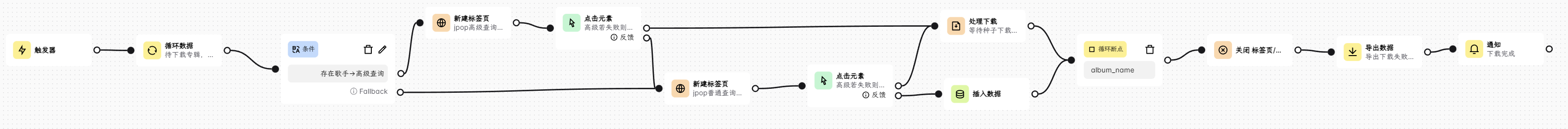 - 点击执行工作流。会自动根据文件数据下载种子并导出下载失败的专辑